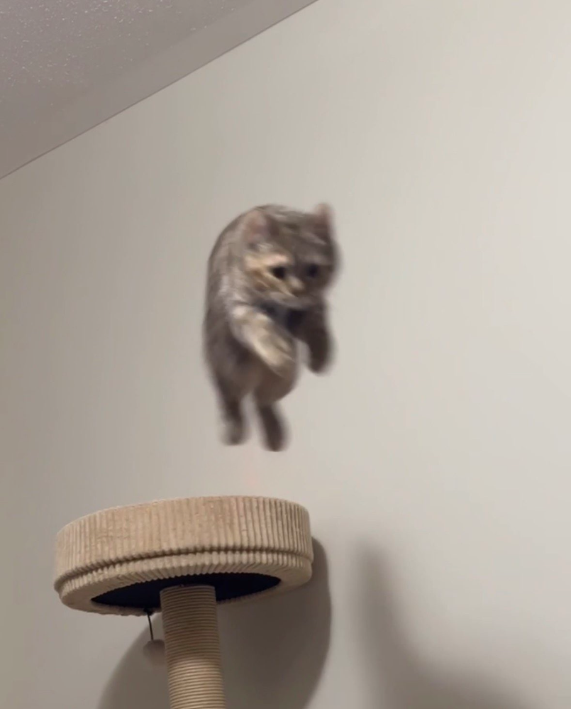 action shot of Suki diving onto Ivy (on the bed) lol